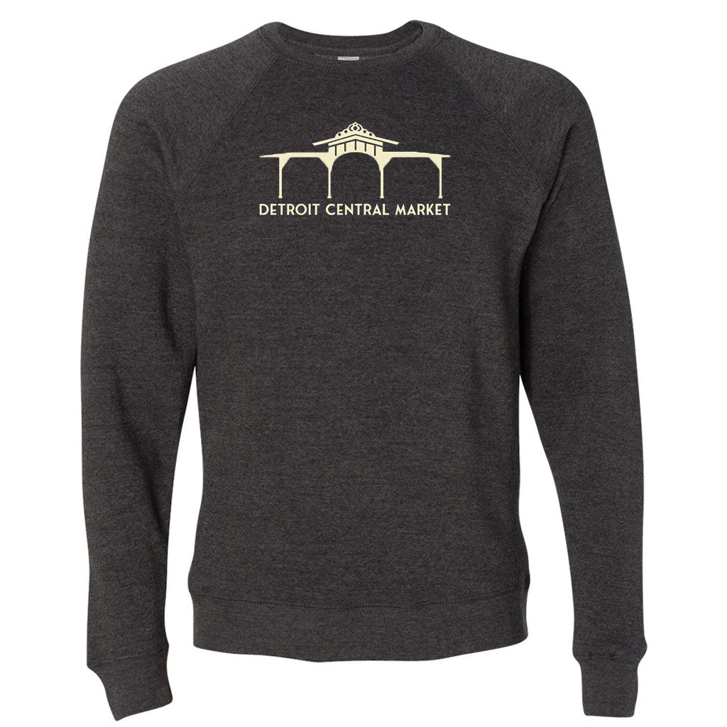 Originally constructed in 1860 in downtown Detroit, the vegetable shed from the Detroit Central Market now stands fully reconstructed at Greenfield Village. After a storied 160-plus-year history that included commerce, near-demolition and then reconstruction, the Detroit Central Market became the first historic structure added to Greenfield Village since 2000. Guests can engage with village presenters to learn more about the historic market's significance. This custom designed raglan sweatshirt pays homage to the Detroit Central Market. It features a cozy soft fabric and a unisex, slim fit. On the back, at the neck, there's a logo print for Greenfield Village.
